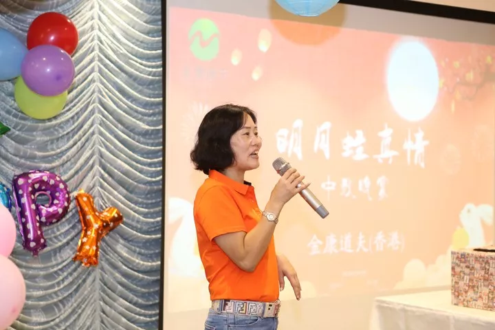 芳姐上台分享与金康道夫结缘经过